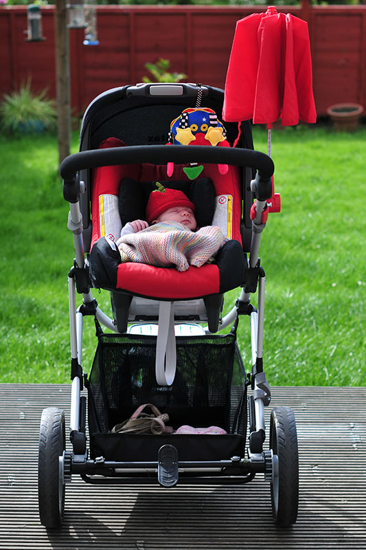 I was going through the, one or two, photos that I’ve accumulated of Marcail in the last ten days, which included her zoning out in the garden in her car seat on the pushchair base; I tell you these travel systems are actually great. You can take her for a walk in the pushchair and then in and out of the car or hanging in the house, all without a change of sleeping place and the consequent “Ahhhhhhh!