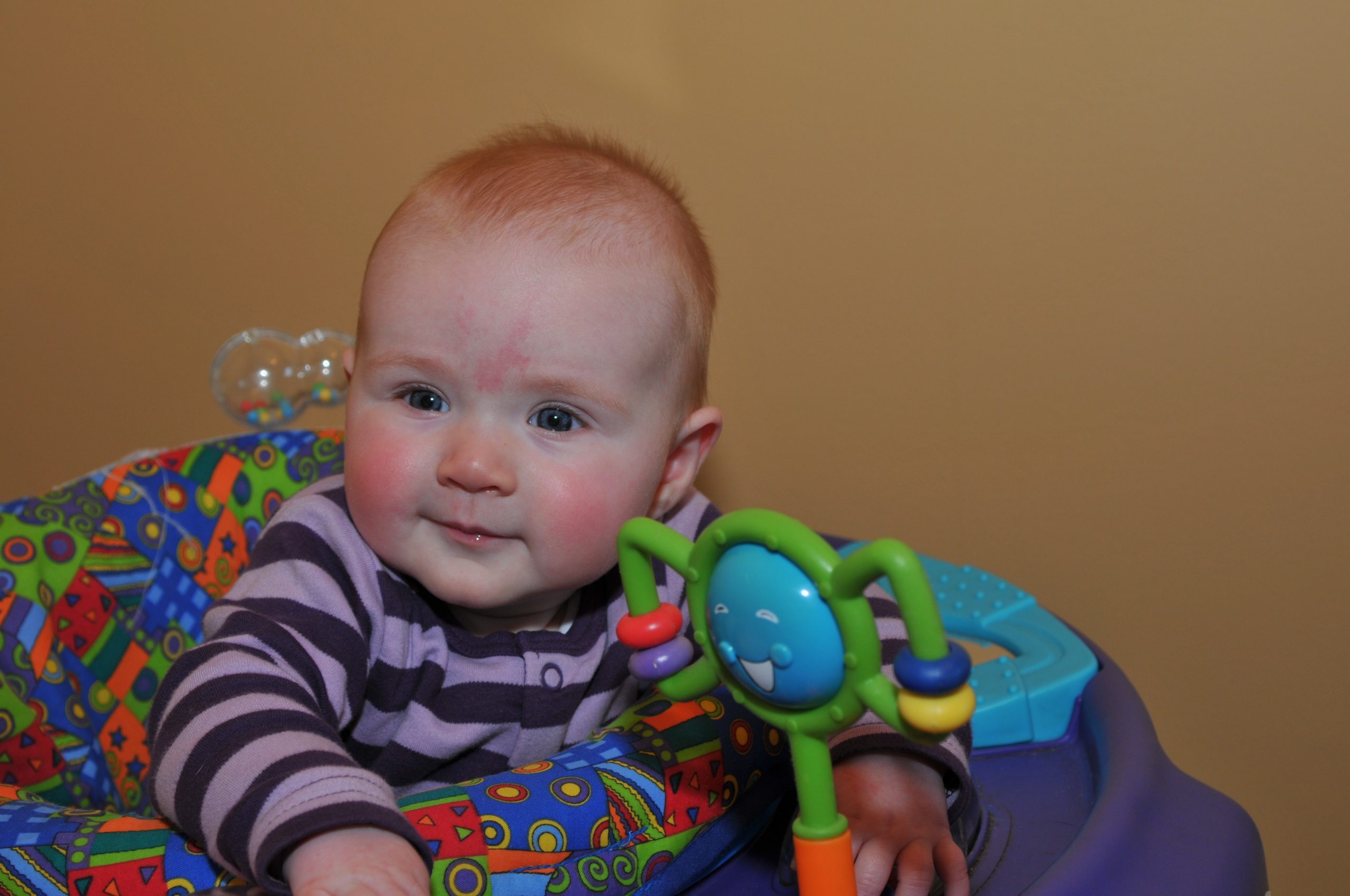 While we were out there Marcail came on in leaps and bounds. Still we were in Canada for a couple of days shy of 4 weeks, so at 5 months you expect a lot of changes in that time. She grew out of half her clothes and grew into several toys during the trip. One thing she grew to love was her “exersaucer”; just one of the mountain of toys, accessories and general kiddy paraphenalia that DL and Terry had borrowed for us to use on the trip.