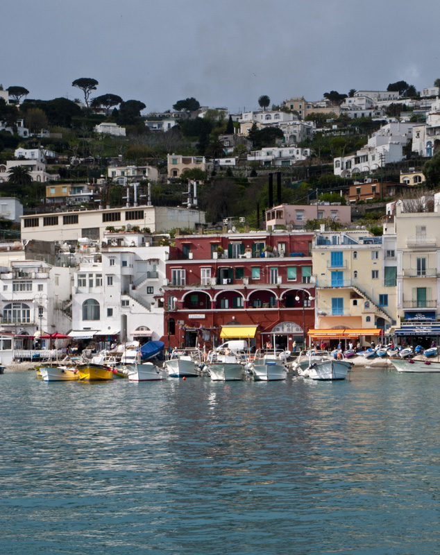 You can’t deny that the Capri harbourfront is pretty as you pull in. It’s a busy little port too. All day there is a constant tooing and froing of jet ferries and smaller private craft. The ferries are impressive in the ease with which the crew manoeuvre them. They will pull in, drop an anchor, pivot around this point to face stern on to the mooring, drop their second anchor and then slide in, inch-perfect.
