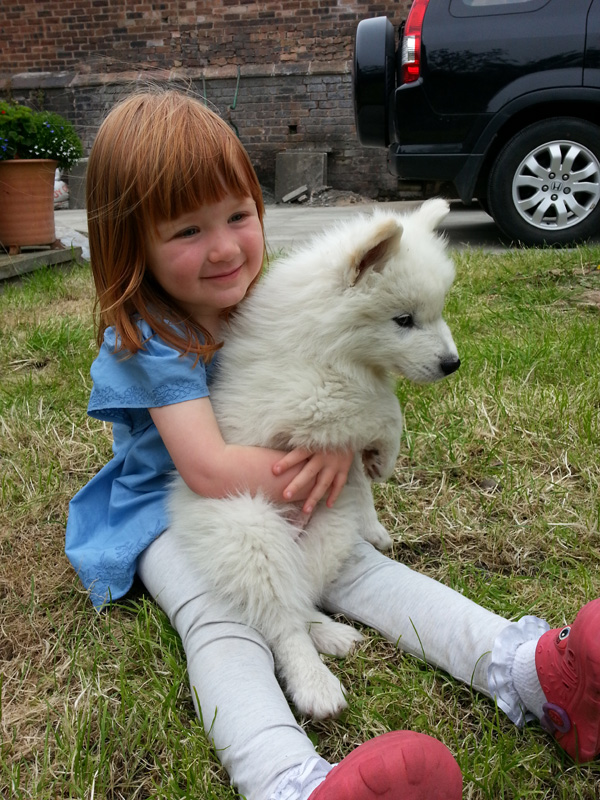 Kids and puppies go together like strawberries and cream, and don’t let anyone tell you any differently. True to form, Marcail and Kamu are fast becoming best friends.